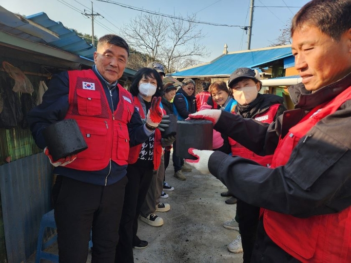 박철근지회장님과 조영흔수석부지회장님, 박용문읍면동협의회장님, 용순옥여성협의회장님, 윤상호청년협의회장님과 각 읍면동위원회장님들과 분회원들, 여성청년회 임원분들과 함께 사랑의 연탄봉사를 하였습니다. 애쓰신 정문철사무국장님 외 모든 분들과 다행히 비가 내리지 않아 무사히 행사를 마칠 수 있어 감사드립니다.^^