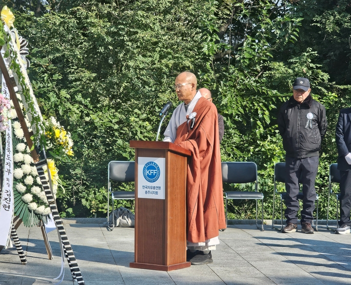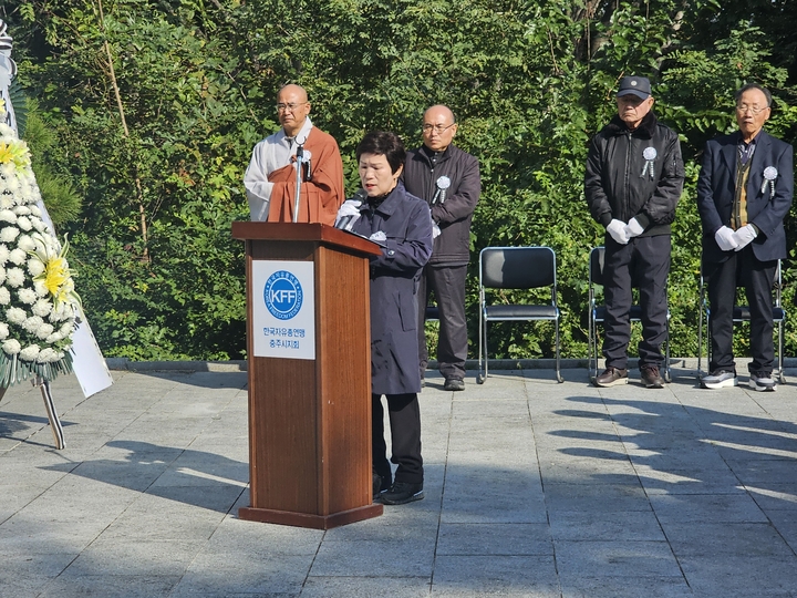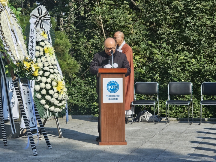 충주시지회(회장 박근석) 는 2025년 10월 29일 호암지 반공투사위령탑에서 자유수호지도자 합동위령제를 하였다.