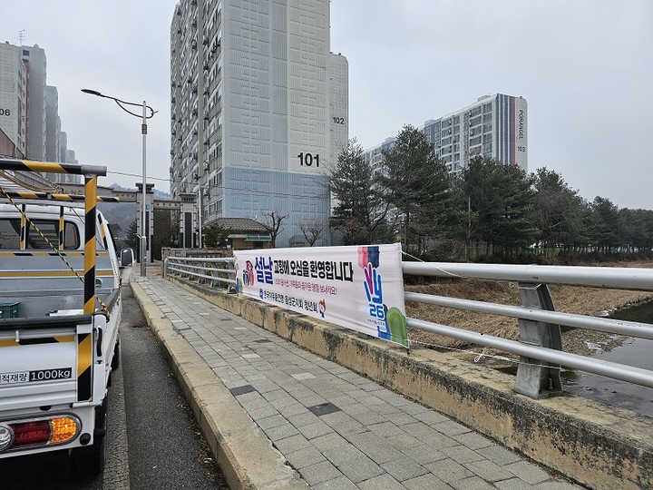 설맞이 환영 및 2026세계 자원봉사자의 해 홍보 현수막 4점 게첨