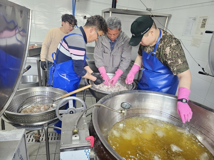 위원장협의회(회장 김동희) 는 2026년 3월 17일 김충희여성회장님, 소영웅 청년회장님, 15명의 위원장님 들과 자장면 400인분, 탕수육 80근, 꿀떡 3말, 오렌지 5박스, 방울토마토 3박스를 가지고 대미부대에 방문하여 사랑의 자장면 봉사를 하였다.