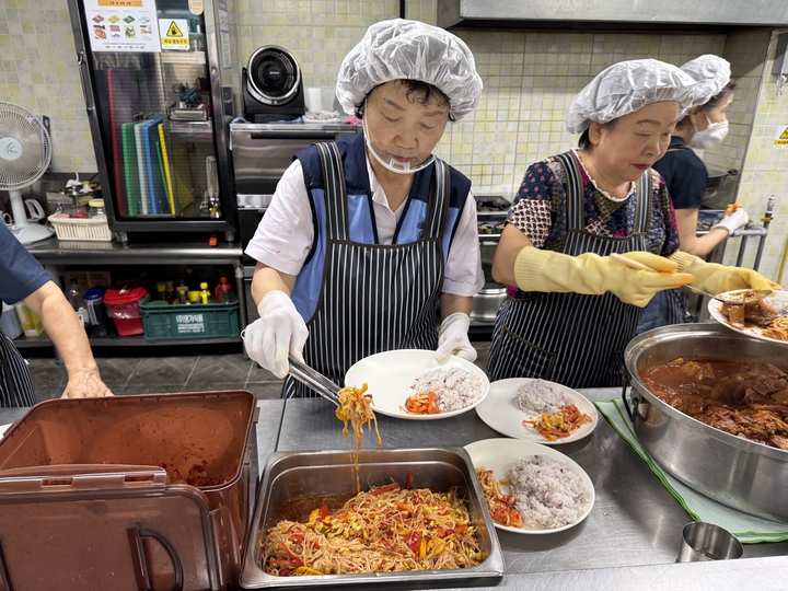10월 14일(화), 태평1동 위원회(여성회장 오예순)는 시원한 바지락미역국과 감칠맛 나는 고등어무조림을 주메뉴로 10월의 두 번째 급식봉사를 이어갔다. 아삭한 파프리카콩나물무침과 김치를 정성껏 곁들이고, 후식으로 요구르트까지 세심하게 챙겨 어르신들에게 깊어가는 가을, 영양 가득한 건강 밥상을 대접했다.