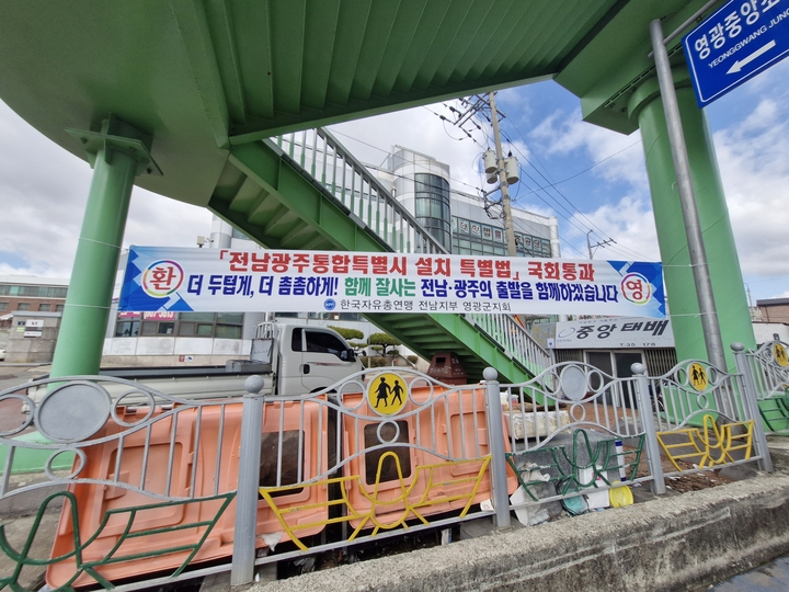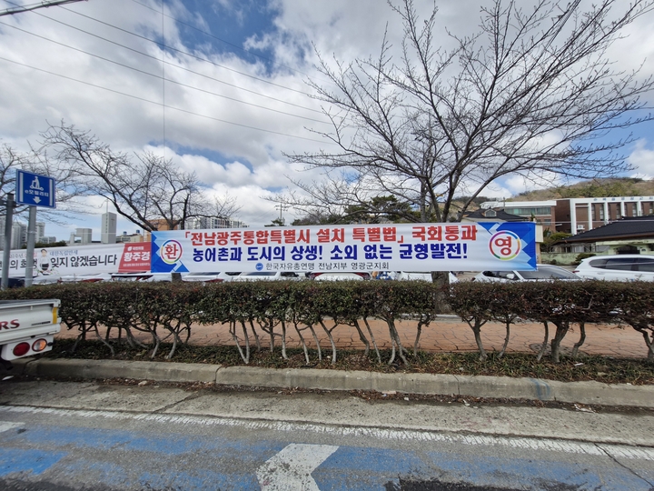 전남광주통합특별시 특별법 국회 통과 환영 현수막 게시