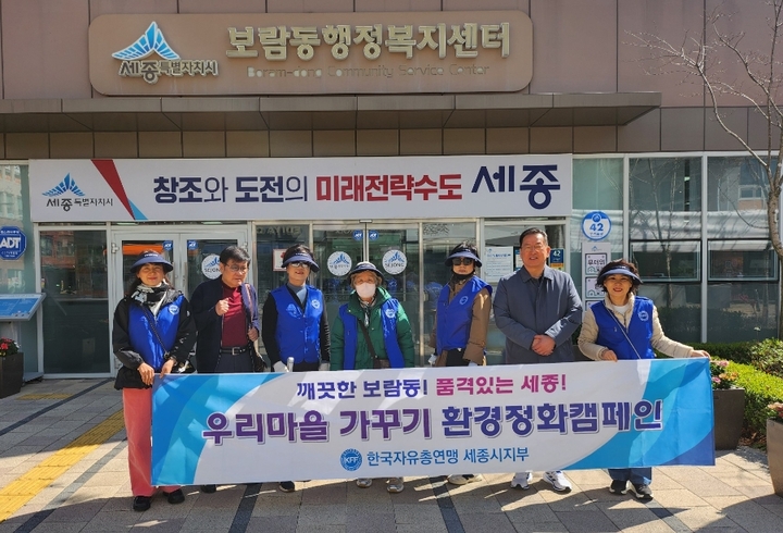 한국자유총연맹 보람동위원회(위원장 김서연)는 금일 새봄을 맞이하여 환경정화캠페인을 전개하여 보람동주민센터에서 보람동 대로 주변까지 청소해 주셨습니다.