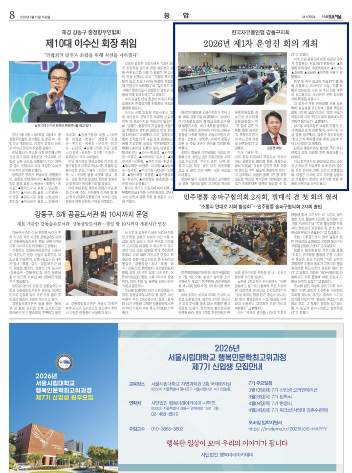[신문 및 유튜브 게재] : 한국자유총연맹 강동구지회, 2026년 제1차 운영진 회의 개최