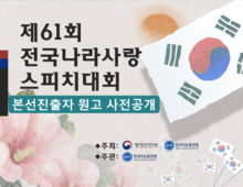 제61회 전국나라사랑스피치대회 - 본선 진출자 발표 원고 사전 공개 - ※게시 순서(무순), 원고내 개인정보 비공개 처리 2025. 10. 27.(월) 교육연구원 ---------------------------------- 1. 2032년 평화의 올림픽 우리는 평창 동계올림픽을 열기 전 까지만 해도 전 세계가 한반도에 곧 전쟁이 일어날지도 모른다는 전쟁의 공포에 시달렸고, 북한의 김정은과 김여정의 말 폭탄은 핵무기만큼이나 우리를 불안하게 하였습니다. 그러나 북한이 평창동계 올림픽에 참여함으로 평화의 화해무드는 급진전 되어 4.27 판문점 남북 정상회담에 이어 9.19 등 3차례나 정상이 만남은 물론 북미간의 정상회담도 하였습니다. 올림픽은 평화를 상징합니다. 우리는 올림픽을 통해 냉전을 극복하고 지구촌의 평화를 만들었던 일들도 있었습니다. 1988년 서울 올림픽을 통해 동서 화합을 2018년 평창 동계올림픽을 통해 한반도 평화의 대전환을 가져왔습니다. 이제 우리는 2032년 서울-평양 공동올림픽을 통해 한반도의 평화를 완성하는새로운 세계질서를 통해 한반도 평화와 번영의 미래를 여는 새로운 도전의 디딤돌로 삼아야겠습니다. 여러분! 이 지구상에서 유일한 분단국