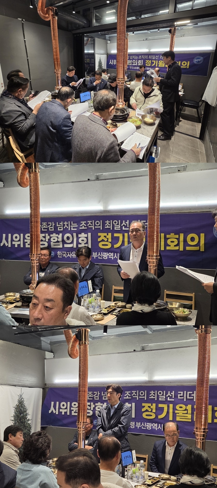 1.일시: 2025.04.04.(금) 18:302.장소: 동구소재 초량화로3.인원: 윤방원사무처장, 김영철 시위원장협의회장, 16개 구·군지회 위원장협의회장4.내용시위원회위원장협의회 김영철회장 및 16개 구·군지회 위원장협의회장들이 모여 04월달의 주요 현안사항 논의를 진행하였다.