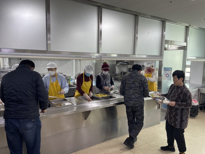 2월23일 괴산군지회 위원회 봉사자들은 매주 행하는 장애인복지관 급식소 배식봉사를 하였다.