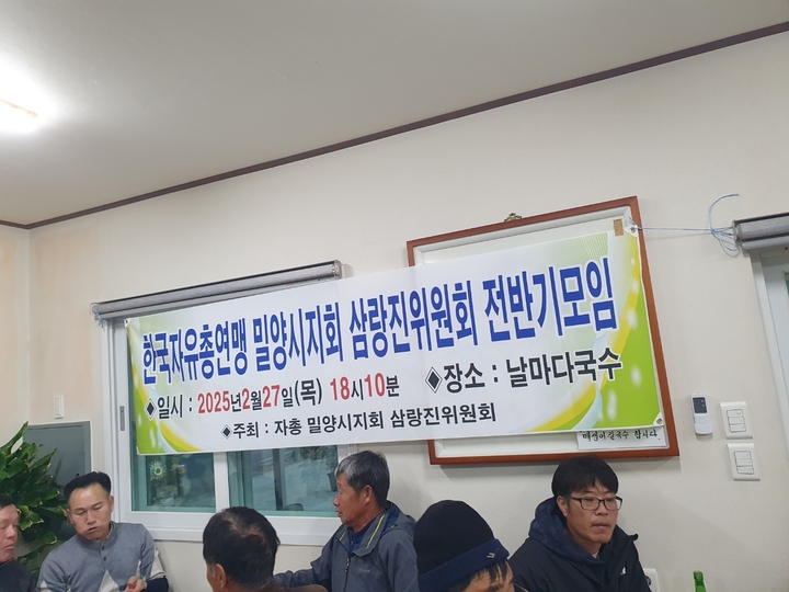 5. 내용 : 삼랑진읍위원회를 재정비하여 새롭게 시작하는 첫회의에 김상득 수석부회장, 손충갑본부장이 참석하여 박정우 삼랑진읍위원장 및 회원들을 격려하였다.
