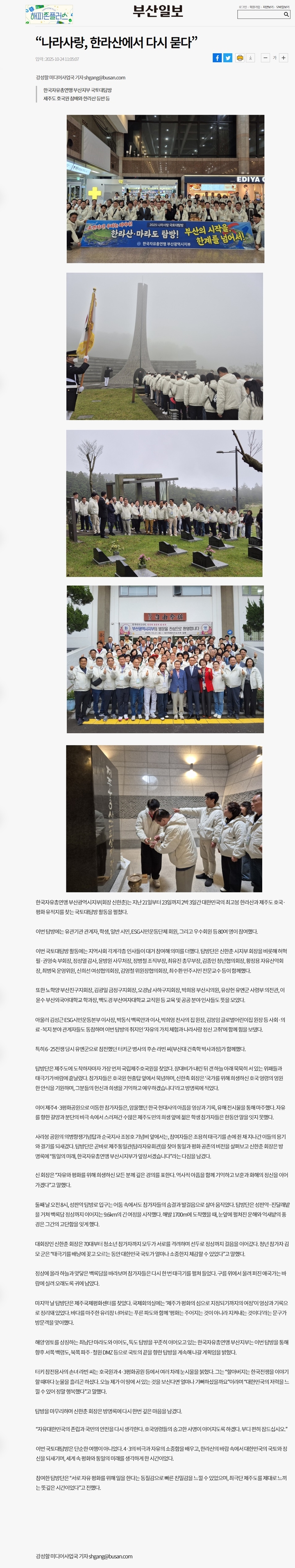 [부산일보]'나라사랑, 한라산에서 다시 묻다.'