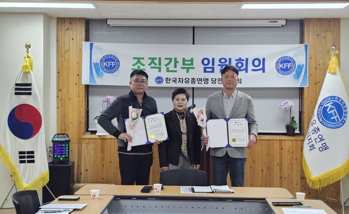 김태권, 이순길 신입 부회장 두명과 신입 청년회장 김태우에게 임명장을 전달하고 지회 발전에 앞장서 달라 당부하였다.