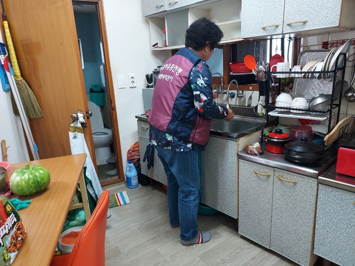 김해시지회에서 물품을 준비하여 수혜자가정에 전달