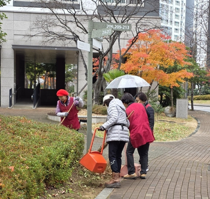 동면위원회 환경캠페인 공원 낙엽쓸기