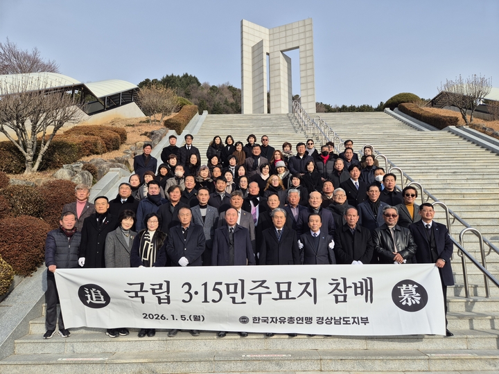 이날 참배 행사는 김용수 도회장님을 비롯한 핵심간부 80여명이 참여하였으며 국립3.15민주묘지 참배를 통해 2026년도 한국자유총연맹 경남지부가 자유민주주의 수호와 자유의 가치 확산을 다짐하고 국민운동단체로서 사회적 약자를 위한 사회적 책임을 다짐하는 계기를 마련하였다.
