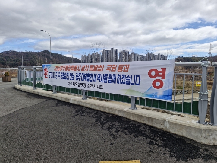 전남광주통합특별시 특별법 국회 통과 환영 현수막 게시