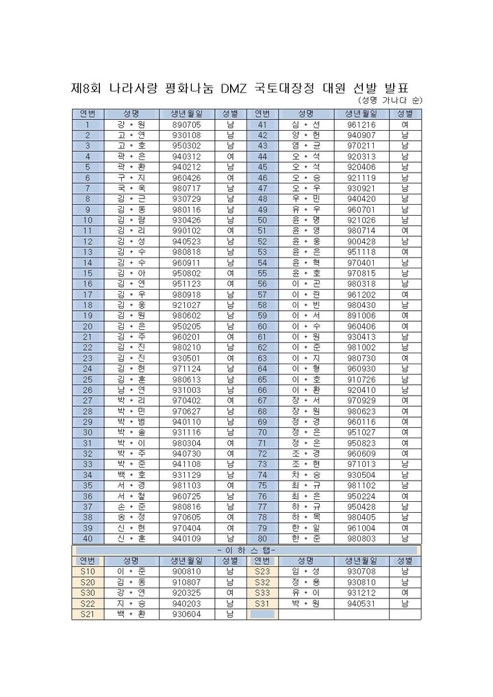 제8회 DMZ 국토대장정 참가자 명단 발표