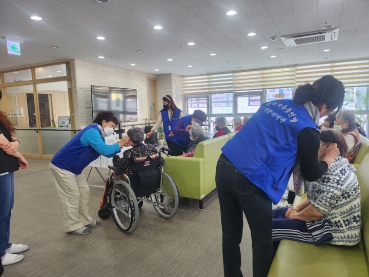 오늘 봉사에는 김서연 위원장님, 손희숙여성회장님, 김난숙 총무님을 비롯한 보람동 회원 8명이 참여해주셨으며 약 50여명 정도 어르신들께 봉사해 주셨습니다.