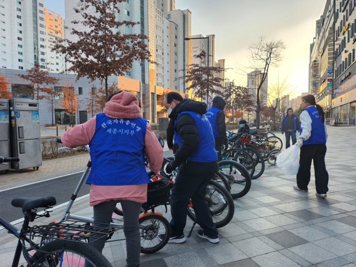 금일 보람동위원회(위원장 김서연)는 금일 보람동주민센터와 함께 보람동 대로변 및 학원가 일대의 무질서한 자전거를 제대로 거치하는 자전거 바로세우기 캠페인과 환경정화활동을 전개했습니다.