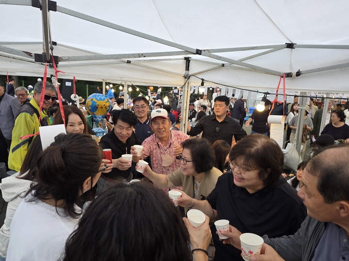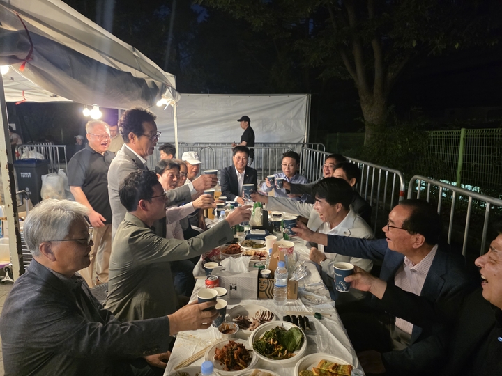 서강석 구청장님과 송파갑 박정훈국회의원님과 남창진,김규남시의원님, 박경래,이강무구의원님,이동근이사장님 ,내외빈께 오환원지회장님의건배사 자유를 외쳤습니다.