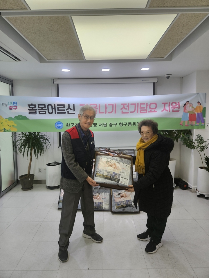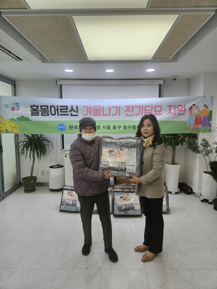 한국자유총연맹 중구지회 청구동위원회는 홀몸어르신들의 따뜻한 겨울나기를 위해 전기담요 15개를 후원하는 사업을 진행했다.