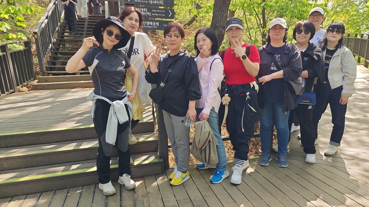 아차산 둘레길을 회원들과 담소를 나누며 걷고
