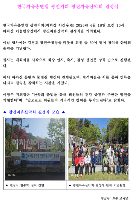 한국자유총연맹 광진자유산악회 결성