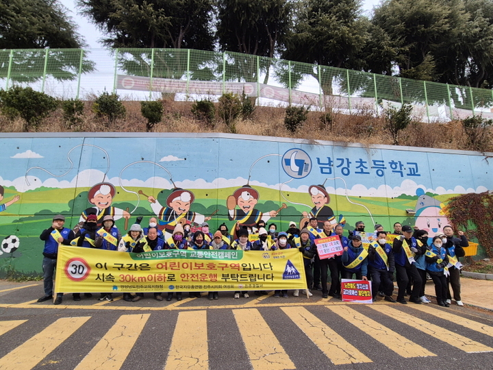 - 내       용 : 남강초등학교, 진주시지회 회원 40여명이 참석하여 남강초등학교 정문에서 어린이 교통사고 예방 메시지를 전달하였다. 어린이 보호구역 서행운전, 횓단보도 앞 차량 일단정지 등의 내용이 담긴 피켓을 들고 교통안전 법규를 홍보했다.