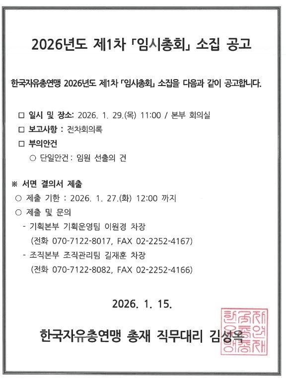 [공고]「2026년도 제 1차 임시총회」 소집 공고