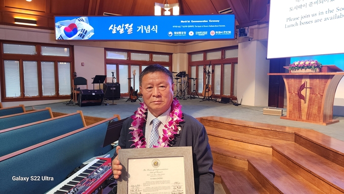 지난 3월 2일 하와이 그리스도교회에서 거행된 제107주년 3·1절 기념식에서 한국자유총연맹 이한종 하와이지부 회장이 축사를 통해 3·1운동 정신 계승과 독립운동 역사의 중요성을 강조했다.