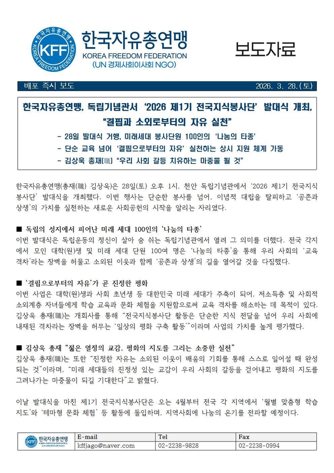 [3월28일] 2026 제1기 전국지식봉사단 발대식 개최